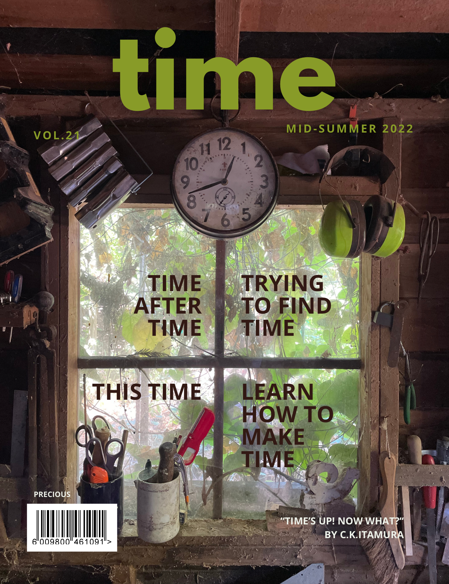 A series of digital assemblages, consisting of photos taken on an iPhone, titles and imaginary headlines combined in the form of fictitious magazine covers that are composite distillations of components that are emblematic of the artist’s experiences during the years 2020 thru 2022. The photos were taken at the artist’s home, studio and garden, as well as other locations within the artist’s “pandemic bubble” and later outside of it, and from her personal archive.